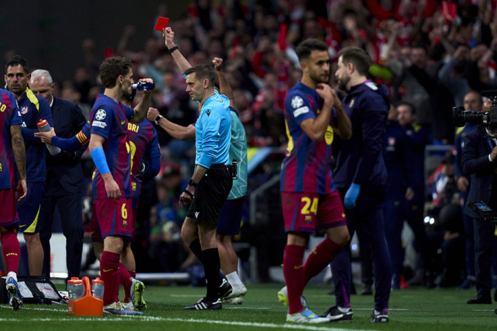 易边再战,巴萨尽管换上莱万、拉什福德等攻击手,却迟迟无法再进球。雪上加霜的是,埃里克-加西亚还因为破坏瑟洛特单刀被罚下。两回合比赛,巴萨均有人染红。